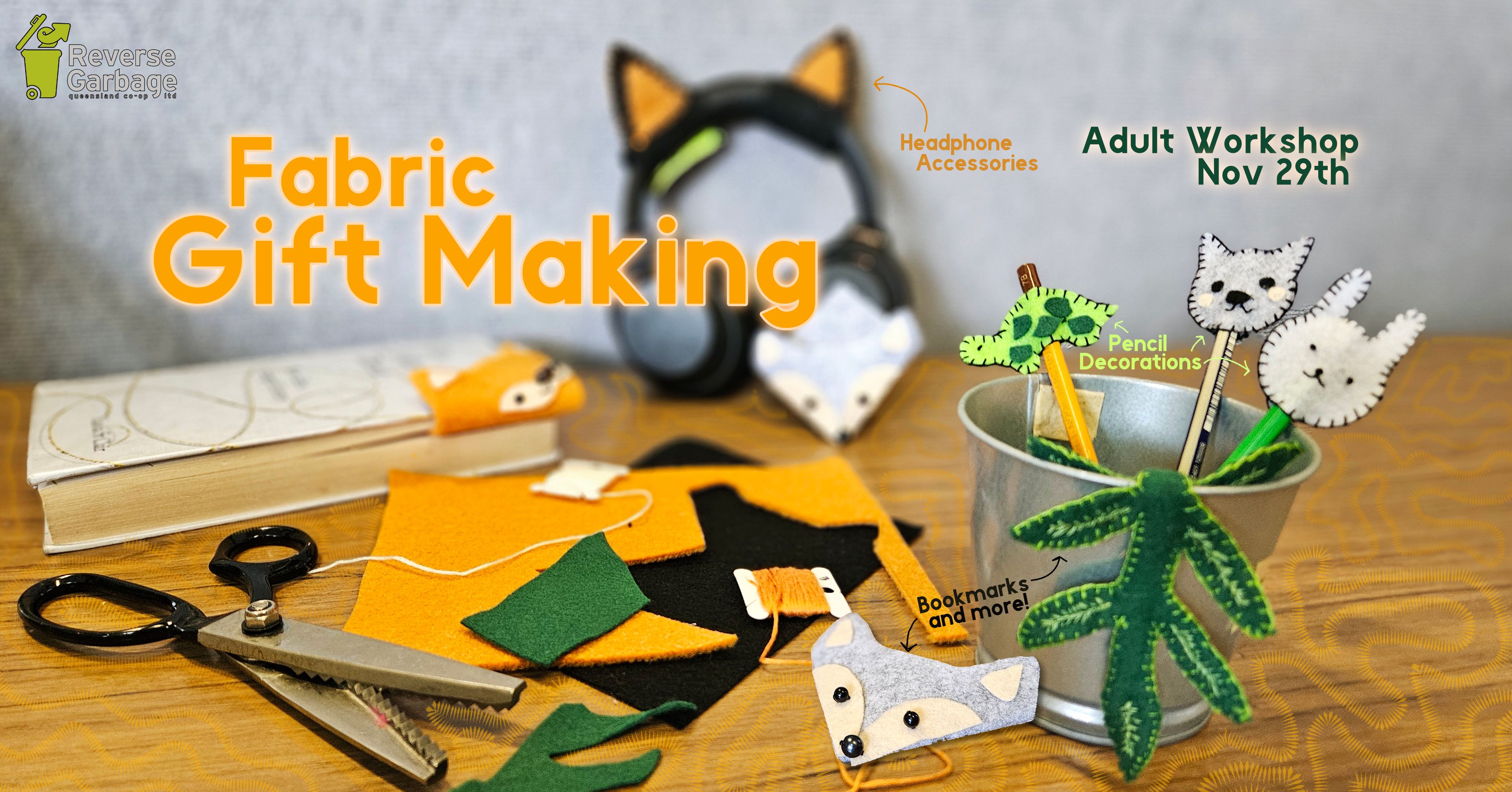 This Christmas, discover the joy of crafting meaningful handmade gifts from beautiful reclaimed materials. In this hands-on, creative workshop, you will learn new techniques to work with salvaged fabrics, felt, embroidery thread, beads and more. Our experienced facilitators will guide you step-by-step as you create thoughtful, and bespoke gifts to suit your loved ones. Make whimsical pencil toppers, create charming headphone accessories for music-loving friends, or design unique bookmarks to accompany book gifts - the possibilities are endless! Whether you are a complete beginner or a crafty enthusiast, we'll help you personalise each creation to suit your needs, and leave you with the skills to continue crafting at home!